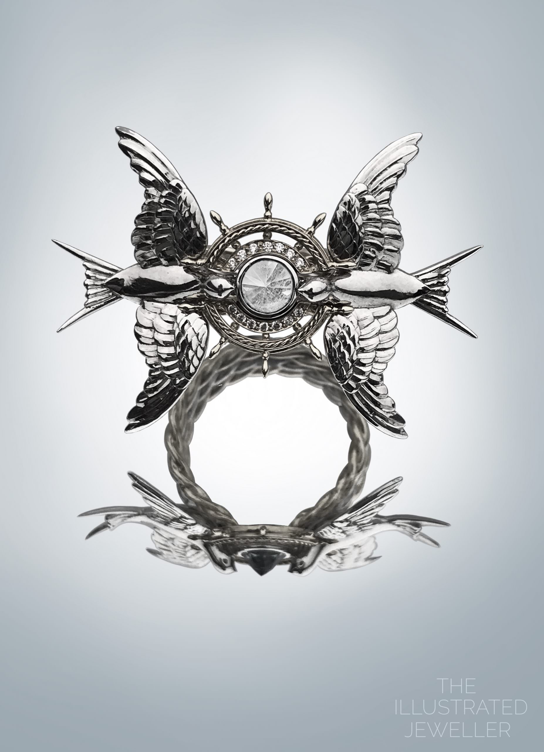 “Ascension ring” & “Ship wreck” stacks, White gold (mirror finish)
