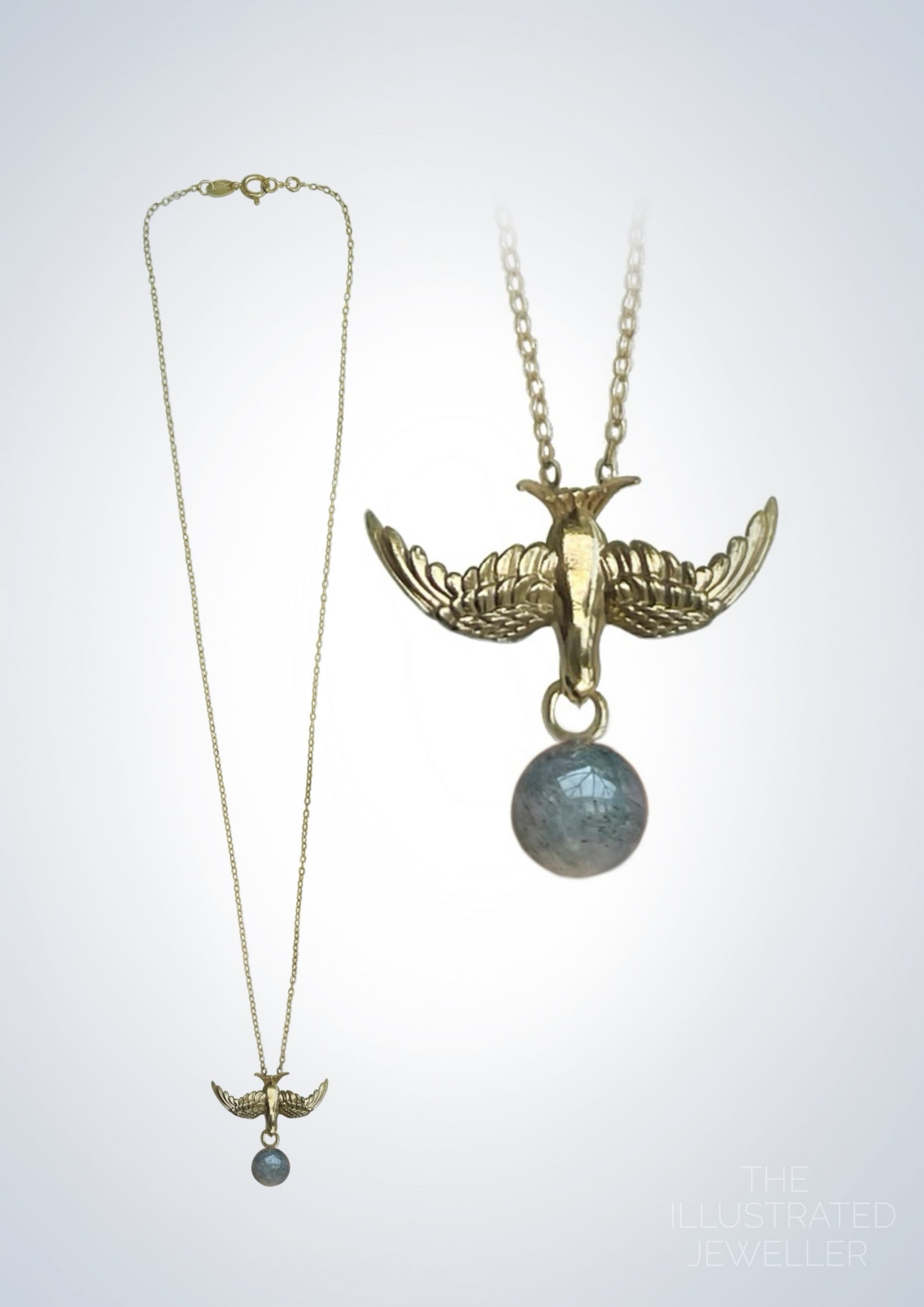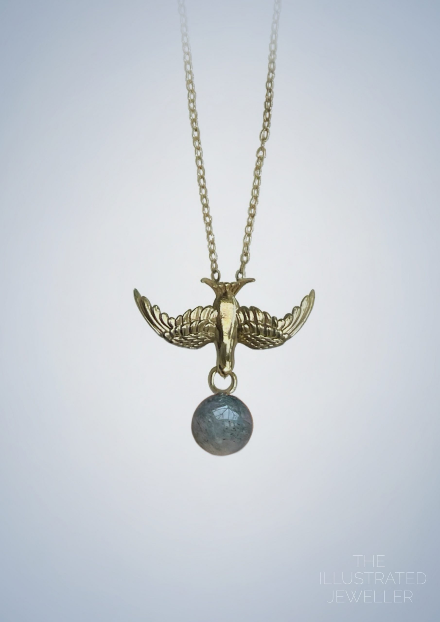 Introducing our stunning swallow pendant crafted in solid silver and 18ct hard Gold Plating (which is X2.5 times thicker than the normal jewellery standard) with Botswana agate charm. Made with solid silver and 18ct gold plating, this beautiful piece comes with an 18 inch ultra thin trace chain. The gemstone is not only visually striking but also believed to connect you to the cosmic universe.