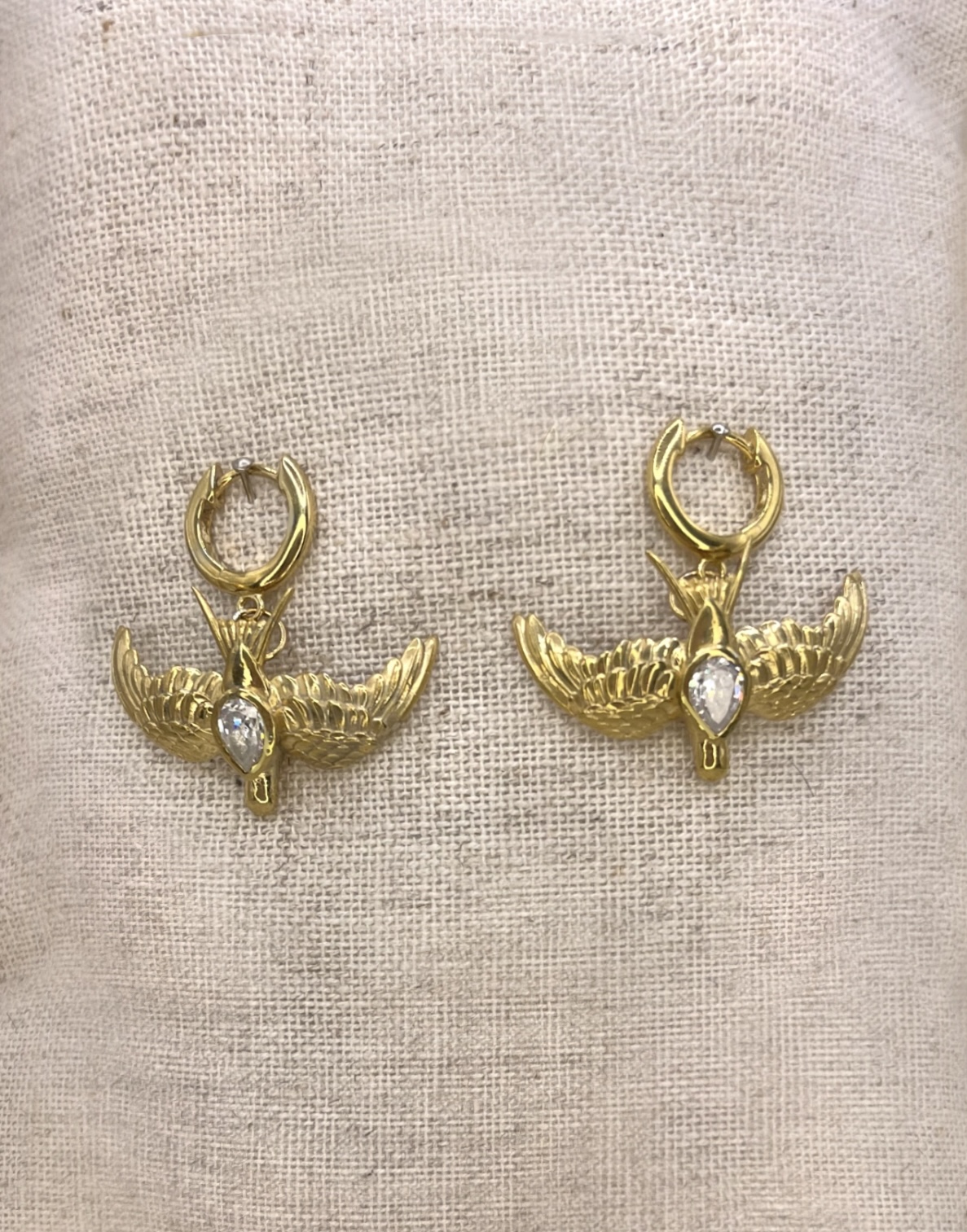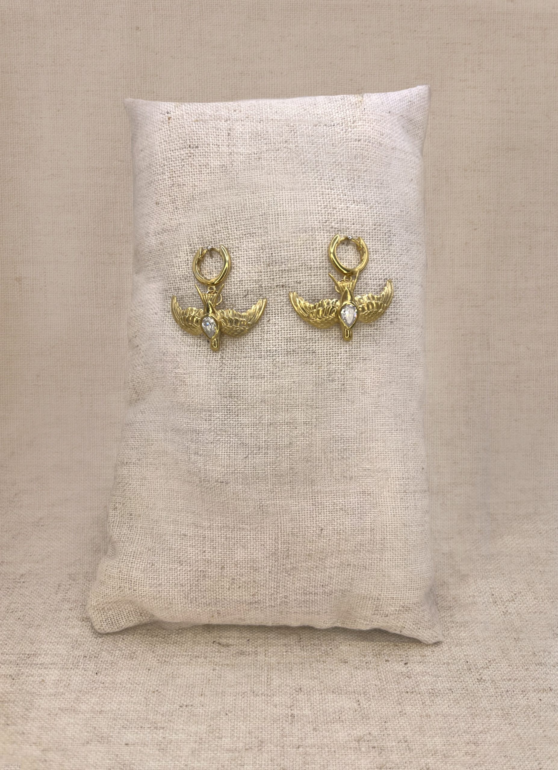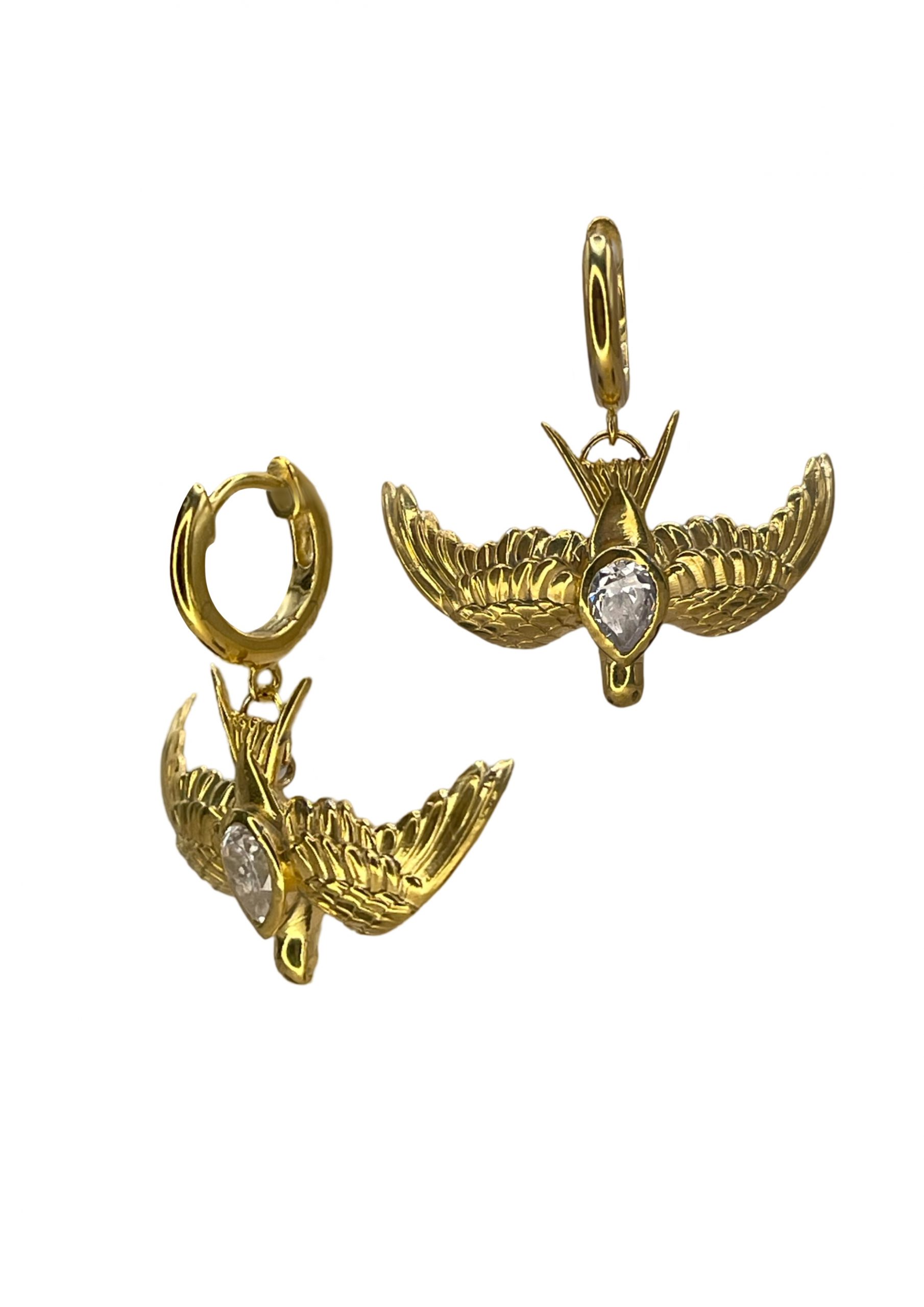 Large gold swallow on clicker hoops