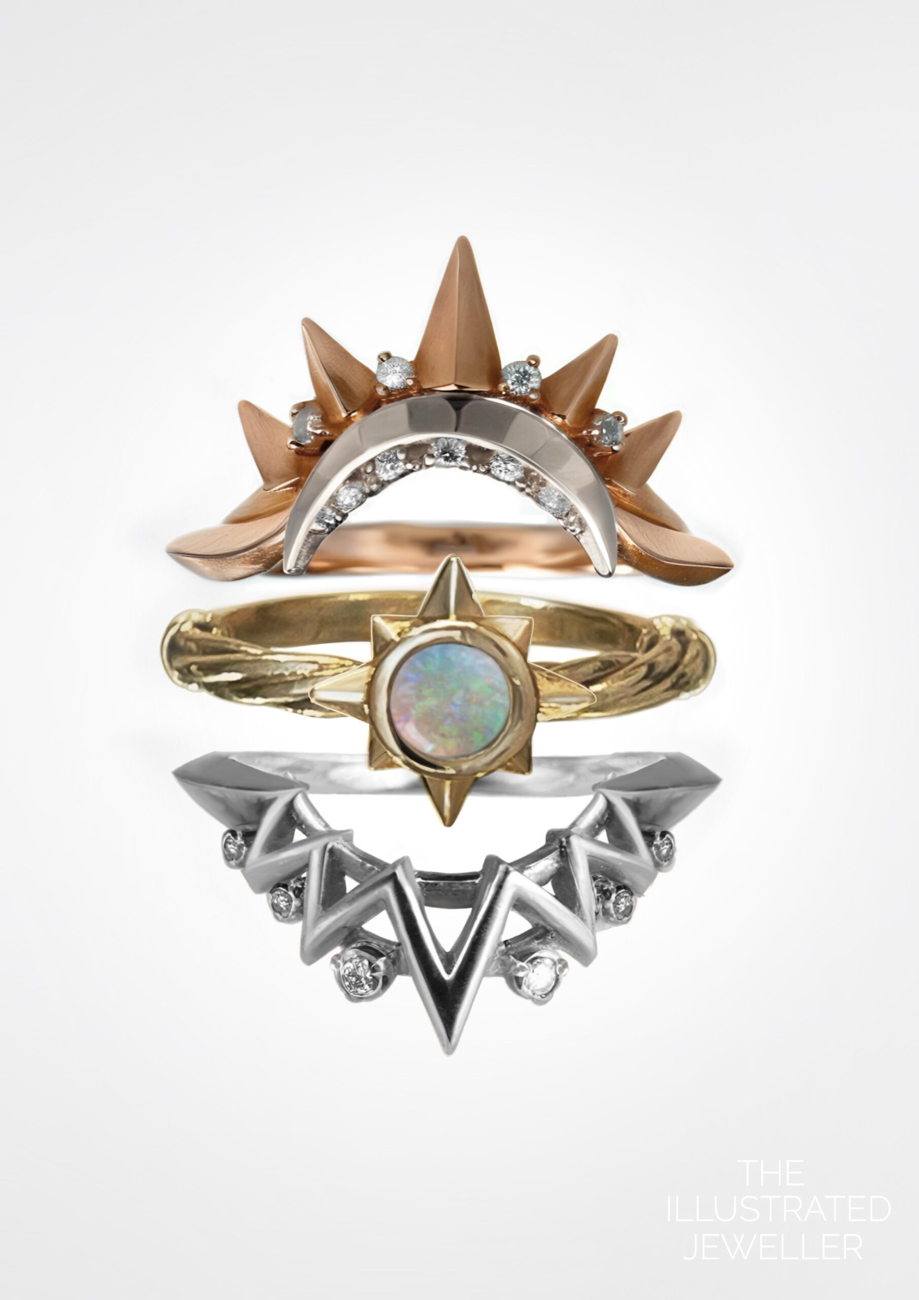 A beautiful nautical trio stack, inspired by how sailors navigated when lost at sea using the sun, stars and the moon.