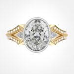 The Lumora oval diamond ring features a softly elongated oval diamond set in sculptural mixed golds. Designed to enhance light and movement, this piece balances elegance and strength in a timeless, modern form.