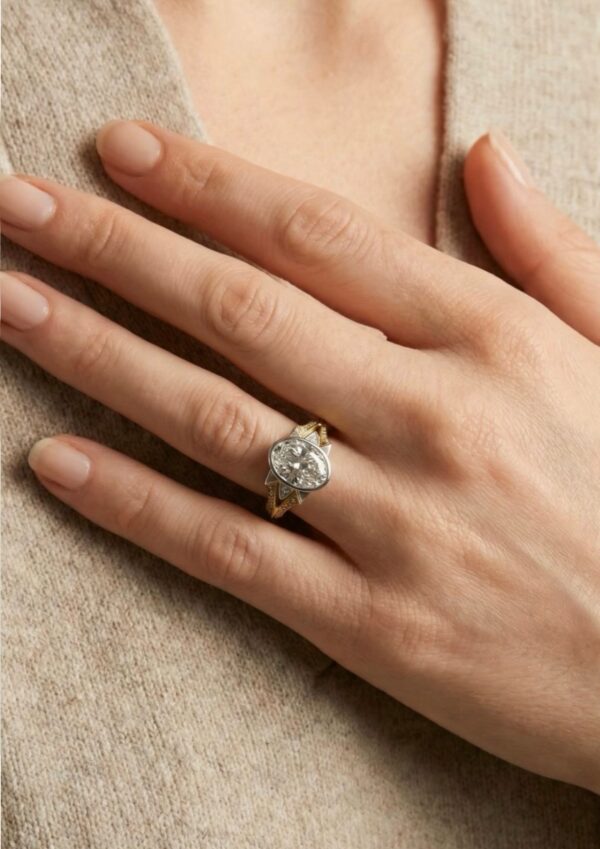 Mixed golds frame the diamond with warmth and contrast, while carefully considered proportions ensure comfort, durability, and everyday wearability.
