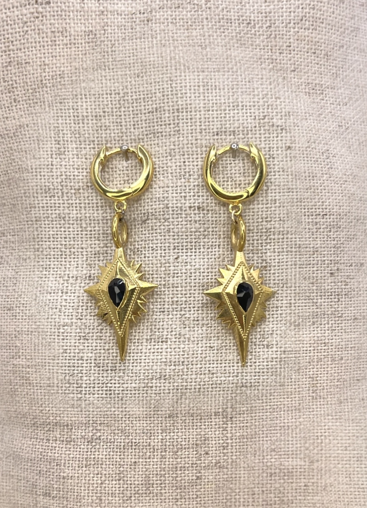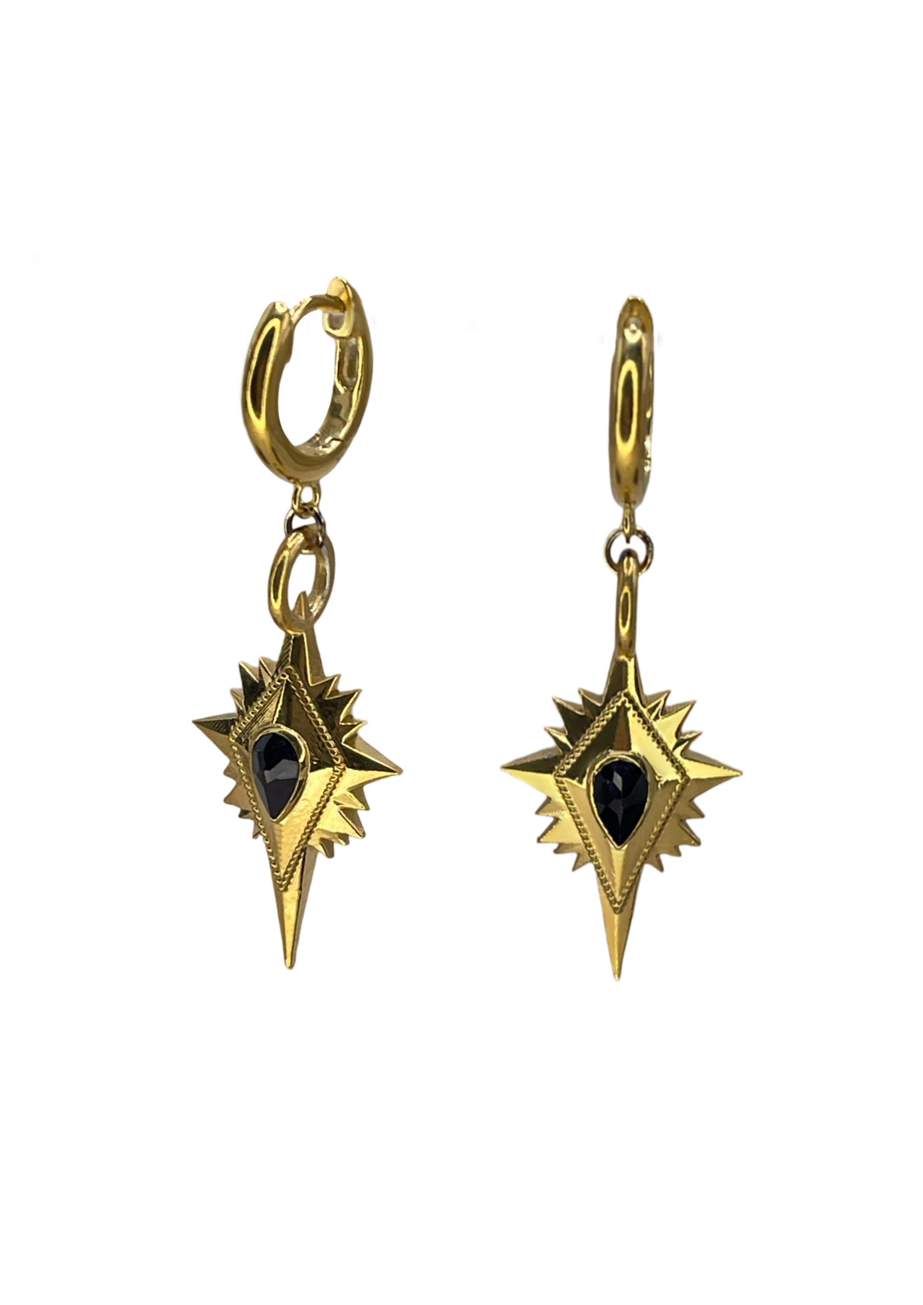 Solid silver with 18ct gold vermeil plating with black spinel on huggie clicker hoops