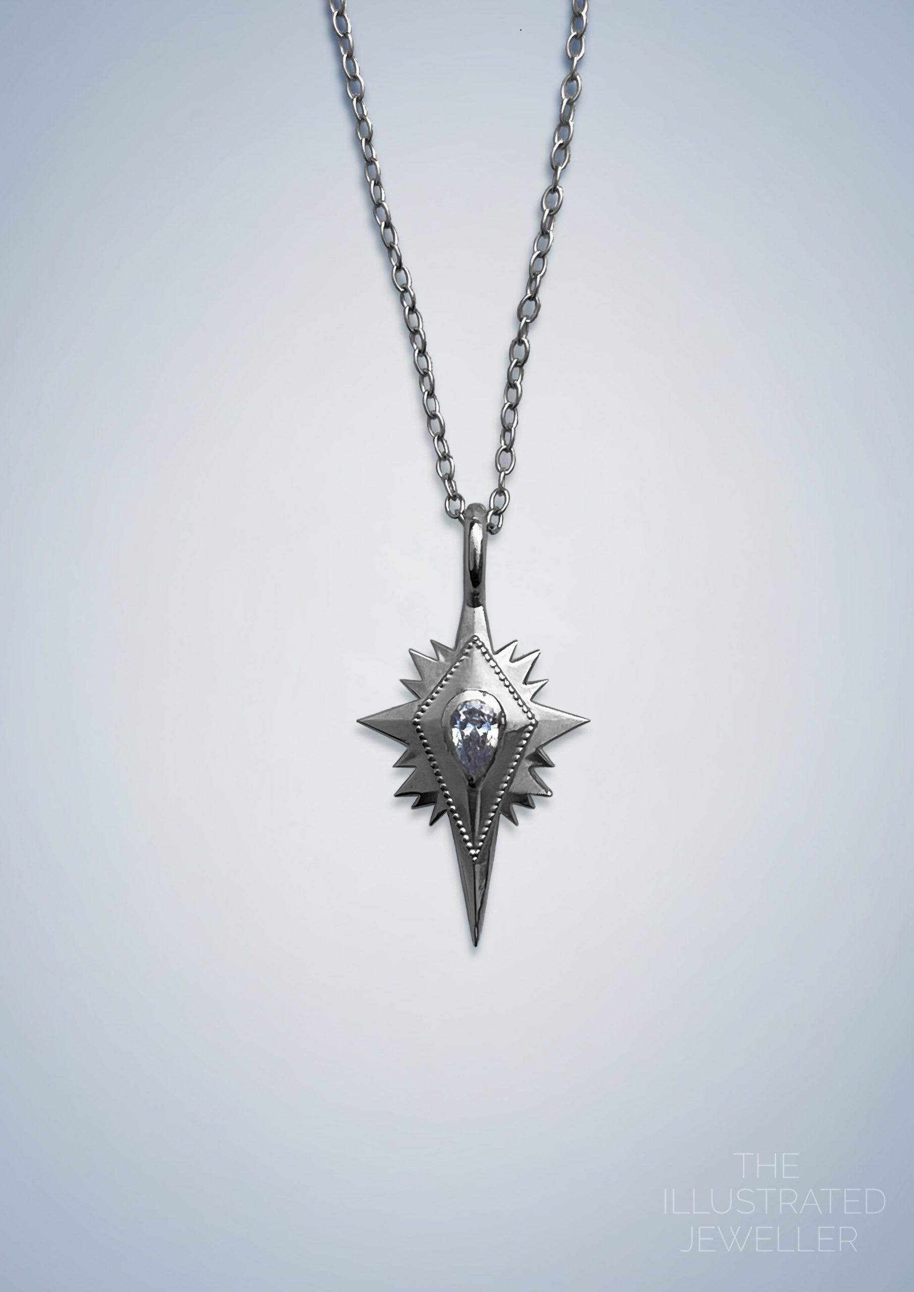 Introducing our stunning Northern Star Necklace, a beautiful piece that will add a touch of elegance to any outfit. Made with solid silver, this necklace features a pear cubic zirconia pendant that sparkles likea star in the night sky.