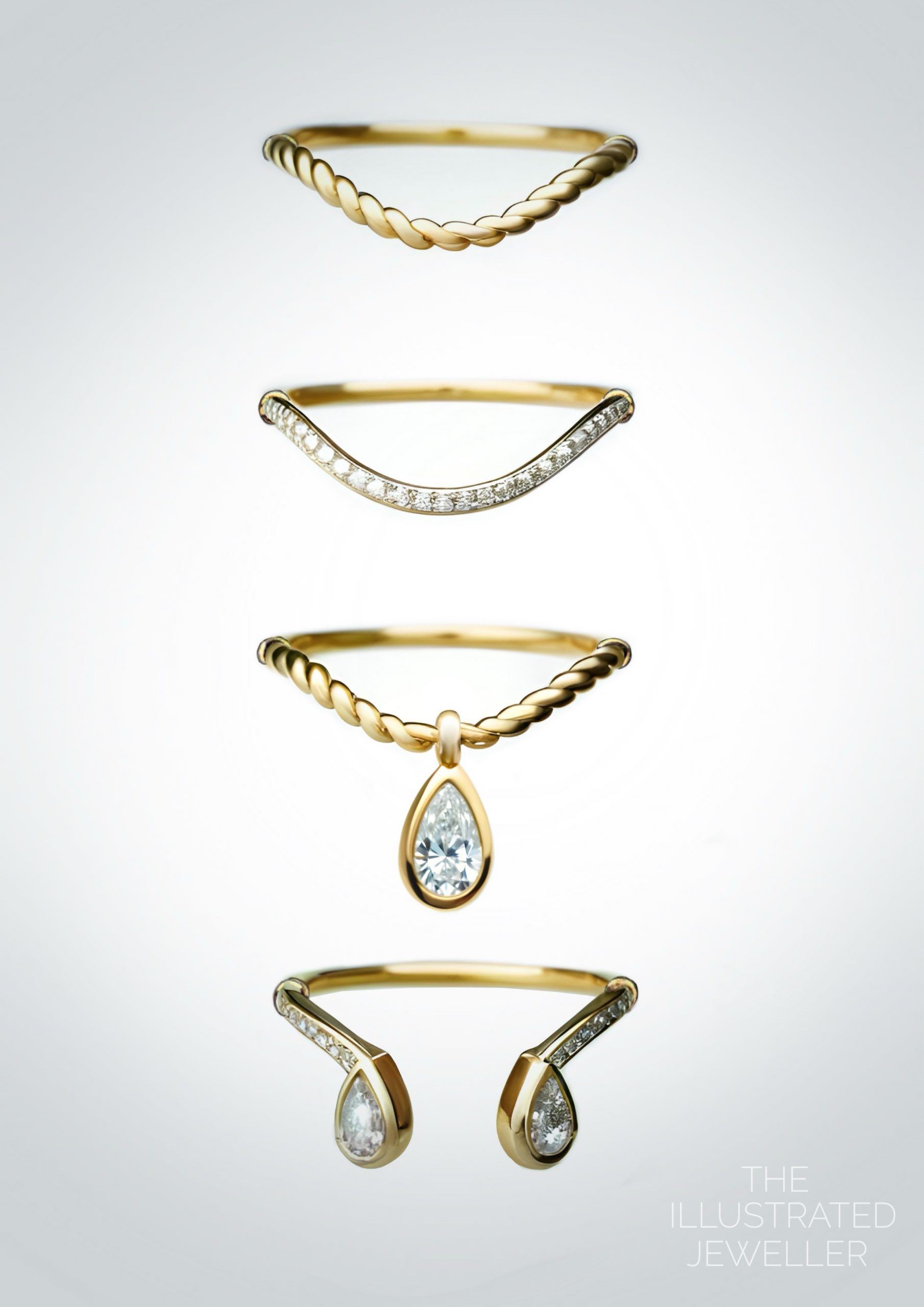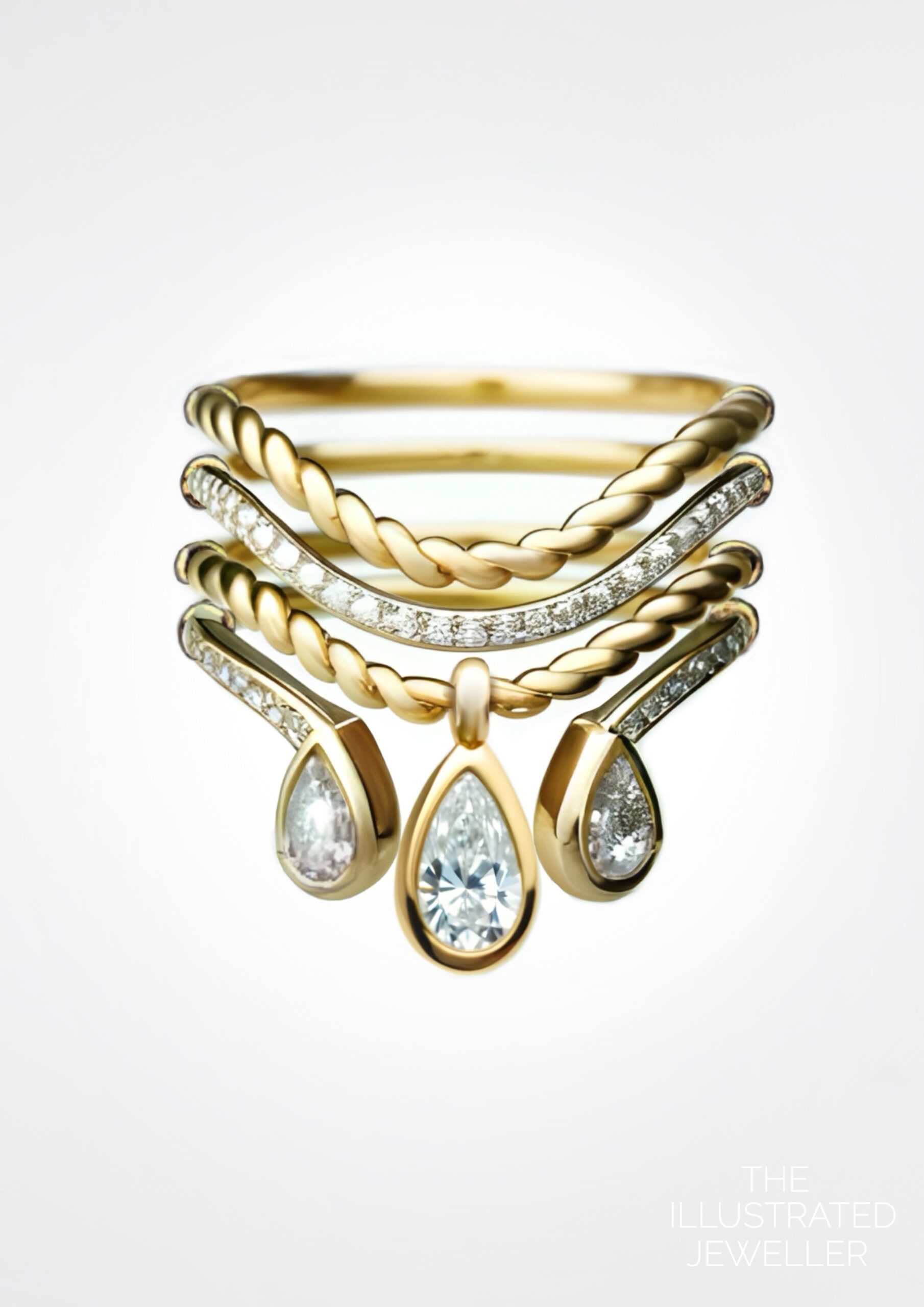 This beautiful stack is very diverse and interchangeable. They can be worn in many different ways and combinations. Individually these rings look beautiful when worn on their own, or accompanied by the “EYE OF THE STORM“ ring to make the ultimate stack. Embellished with D-F VS laboratory grown diamonds.