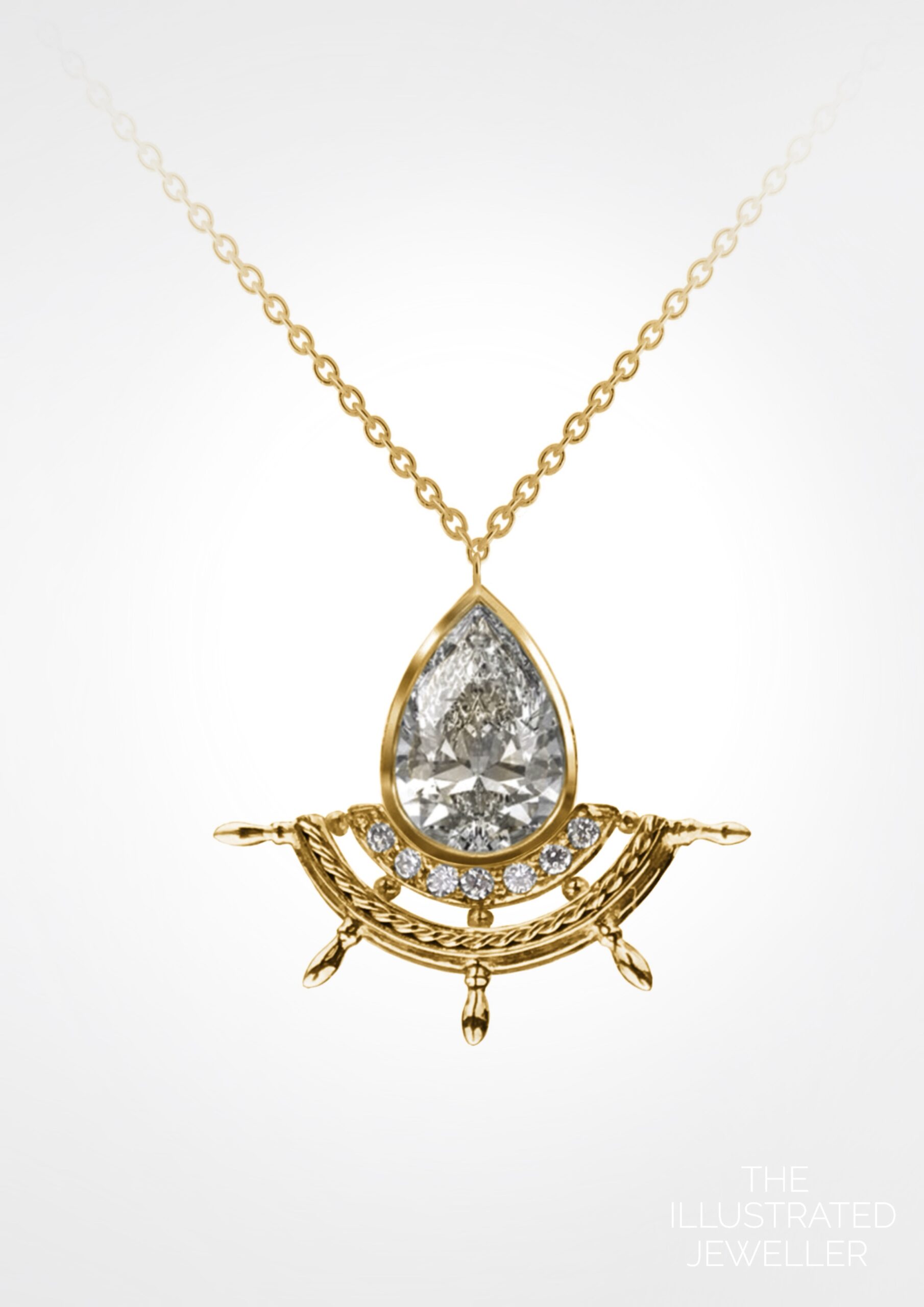 Beautiful ship wreck necklace with diamond water droplet. Made with an ethical choice of D-F VS laboratory grown 6x4mm pear diamond, with 1mm pave set white diamonds and ship rope embellishments.