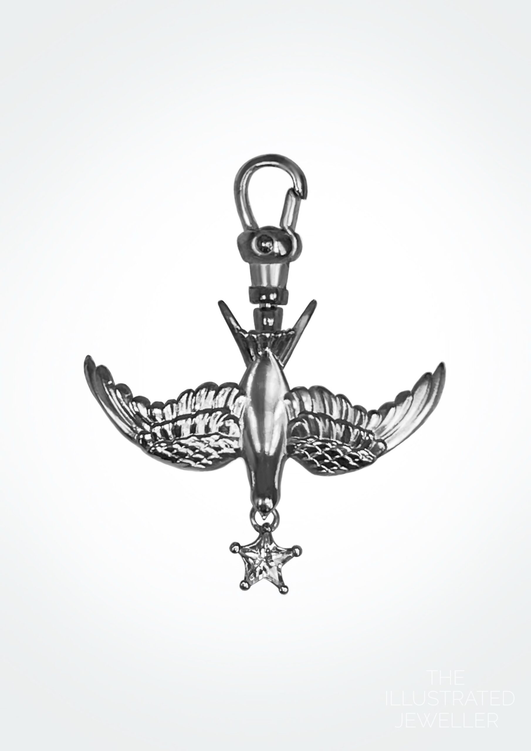 Silver swallow charm with a star-cut cubic zirconia drop – a guiding light in wearable form.