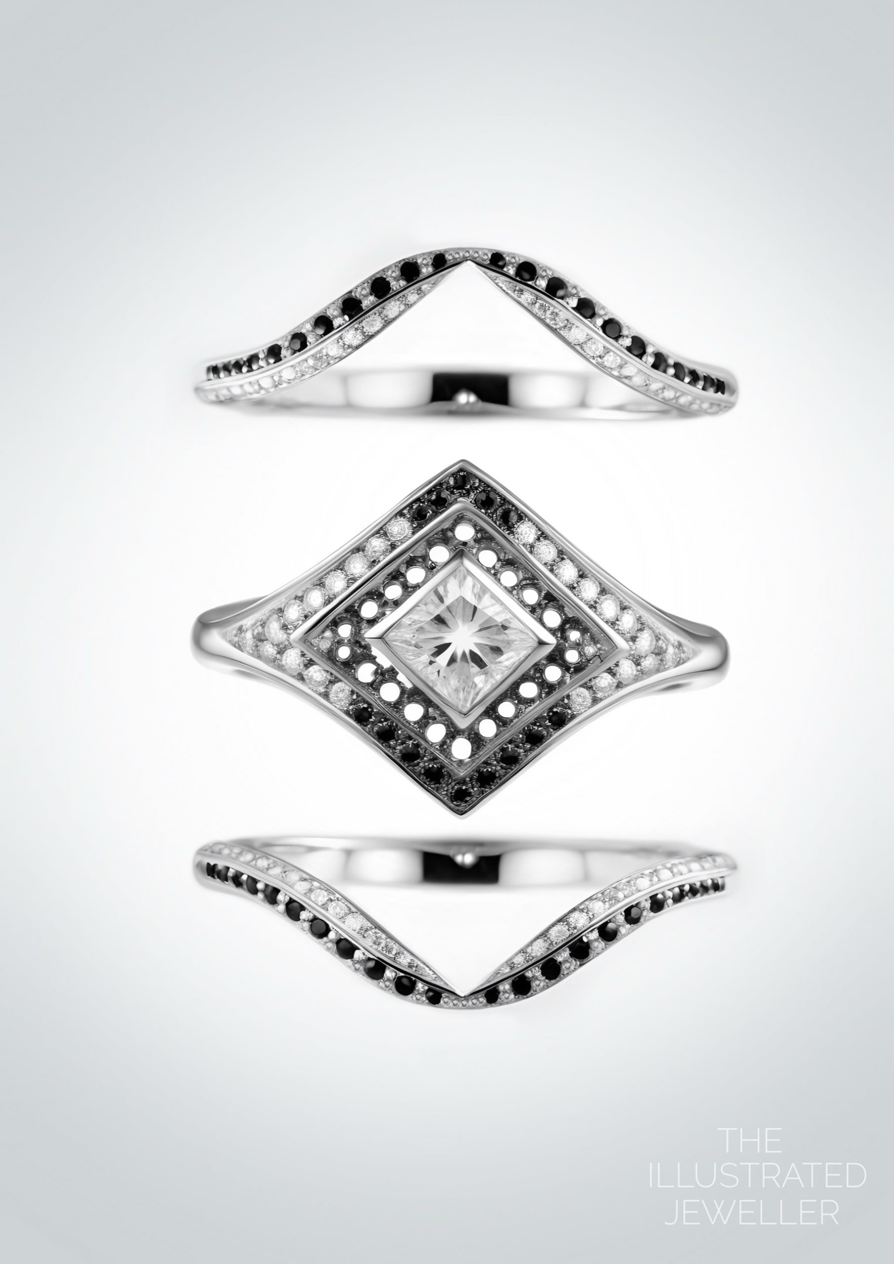 | • A princess-cut diamond centerpiece set in a romantic kite orientation | ||||