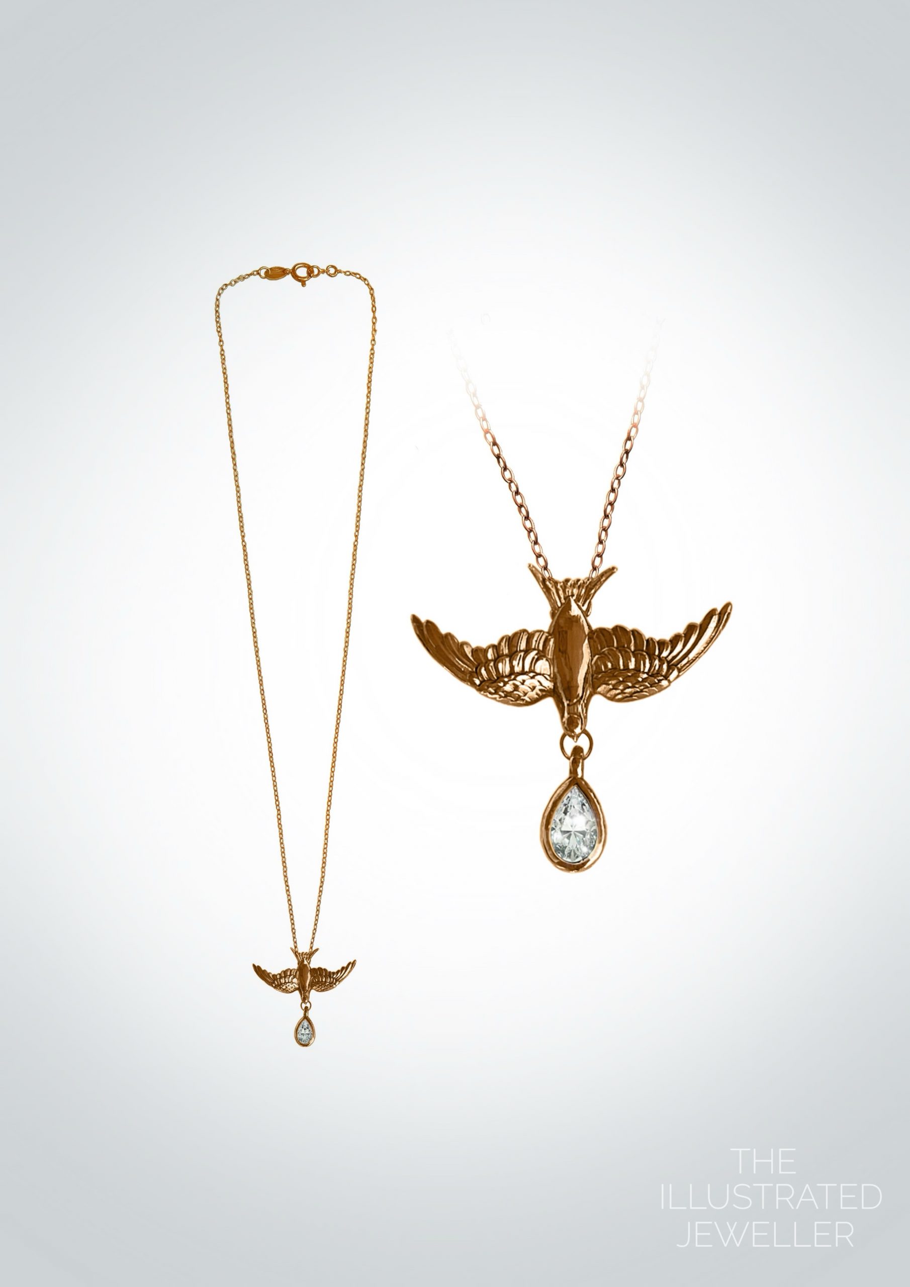 This beautiful unique piece of jewellery is made in solid white gold. It encompasses a pear coloured gemstone embellishment which is fully customisable. If you would prefer a specific stone or colour please press “make it your own button” It would look beautiful worn on its own or layered with other elements, such as the “ship wreck” necklace or the “swoop swallow” earrings.