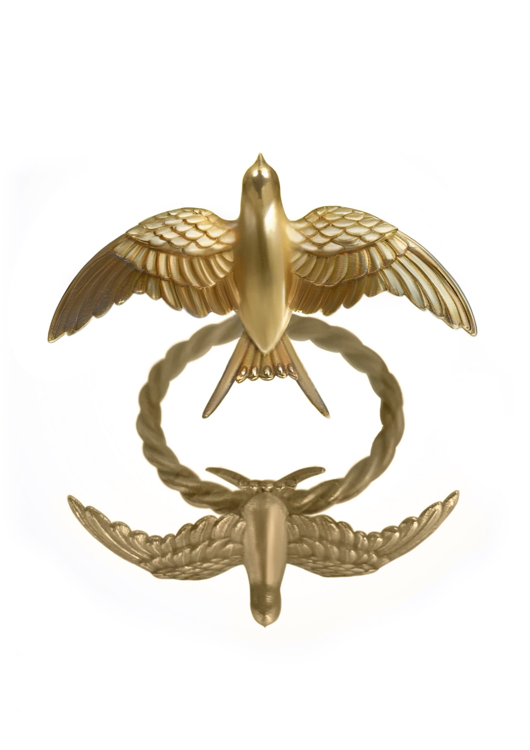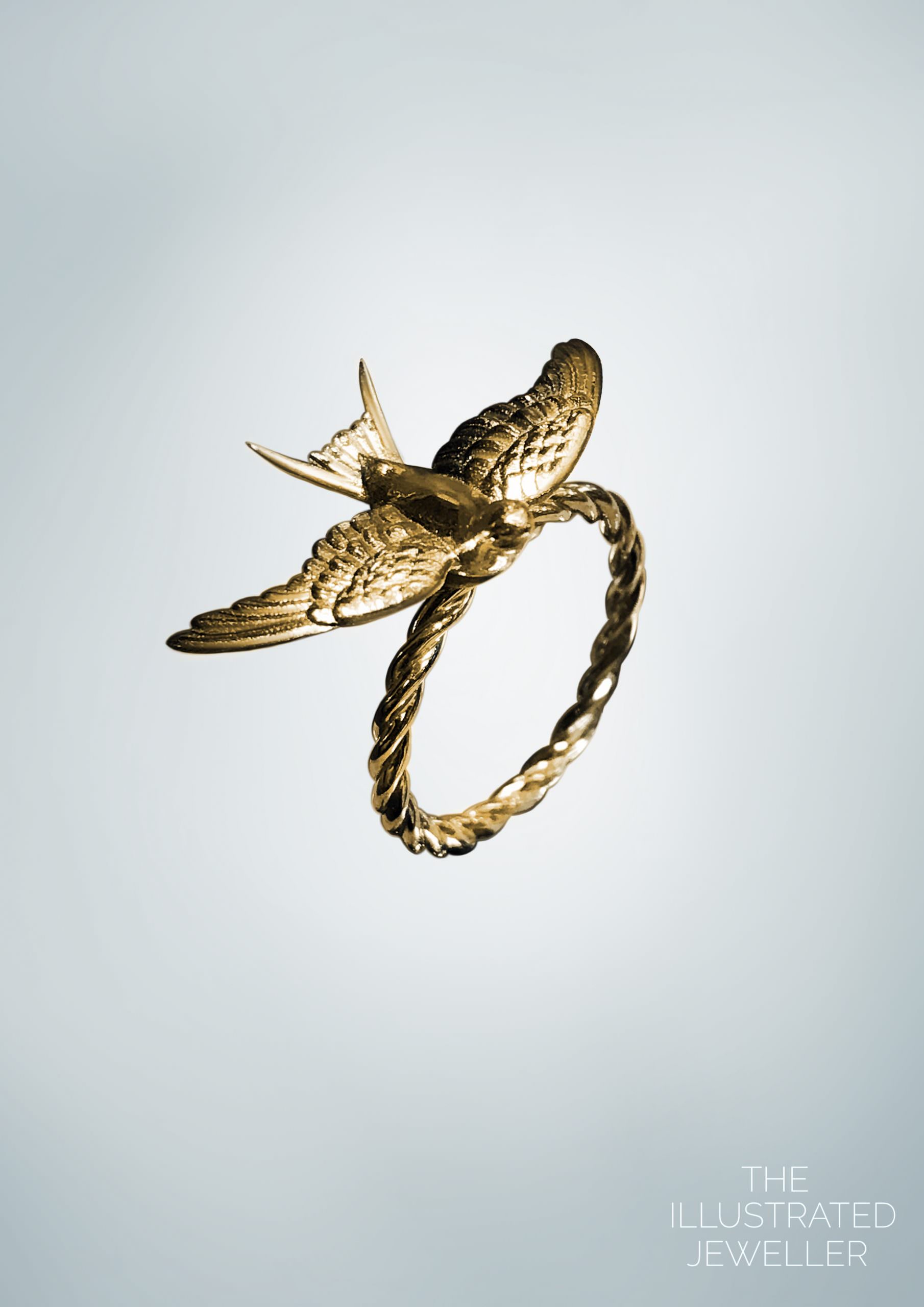This beautiful ring encompasses a swallow just about to embark on its journey and taking flight, mounted on a twisted ship rope ring. Sailors used swallows as a symbol of “safe journeys” as they always return home to port.